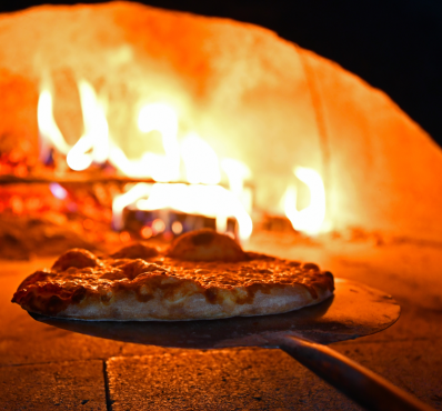 L'alta temperatura e la cottura rapida mantengono gli ingredienti umidi e l'impasto croccante. Il leggero aroma di fumo dà alla pizza un tocco speciale.