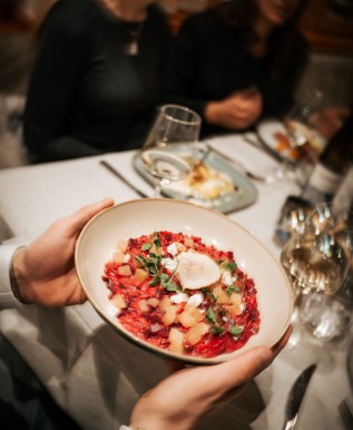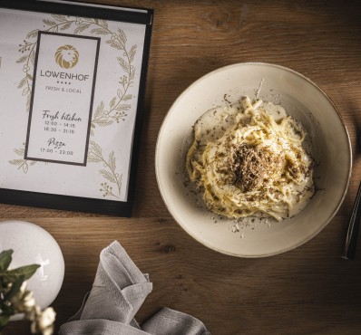 Nel nostro ristorante vi aspetta un viaggio tra i sapori del Mediterraneo e dell'Alto Adige. Utilizziamo ingredienti freschi e locali per creare piatti unici e genuini.